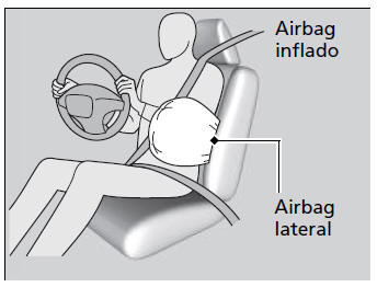 No deje que el pasajero delantero se recline lateralmente con la cabeza en la trayectoria de despliegue del airbag lateral.