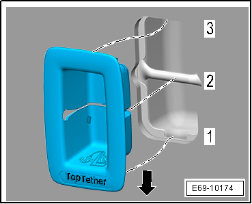 - Desbloquear los salientes de encastre con la cuña -T10383/1--flechas-