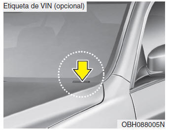 La etiqueta de certificación del vehículo situada en la columna central en el lado del conductor (o del copiloto) muestra el número de identificación del vehículo (VIN).