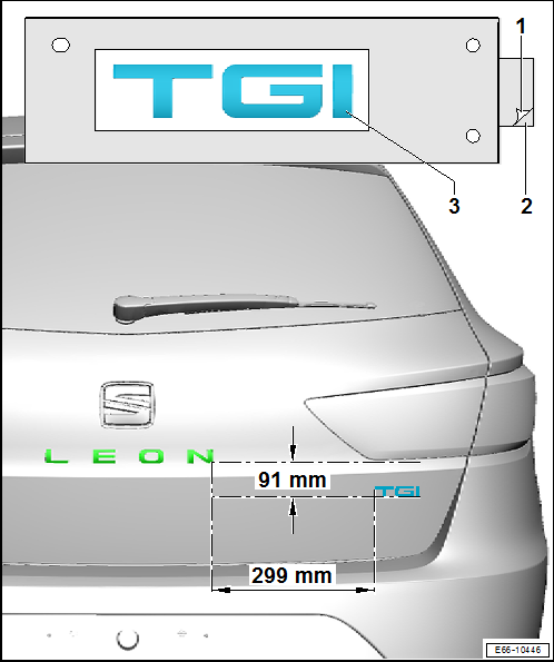 - Colocar el anagrama adhesivo "CUPRA"-3- y con una fuerza aproximada de 5 Kg, presionarlo con el útil de presión -T20098-.