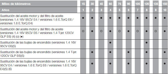 La Red de Asistencia Fiat lleva a cabo el servicio de mantenimiento programado según unos plazos (o kilómetros/millas) prefijados. Si durante estas revisiones, además de las operaciones previstas, fueran necesarias otras sustituciones o reparaciones, éstas serán realizadas únicamente previa aprobación del cliente. Si el vehículo se utiliza frecuentemente para el arrastre de remolques, reducir el intervalo entre las intervenciones de mantenimiento programado.
