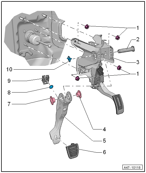 Cuadro de montaje - Pedal del freno, vehículos con el volante a la izquierda