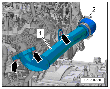 - Soltar la abrazadera de tornillo -2-, retirar el tubo de conducción de aire -1-.