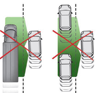 Algunos tipos de obstáculos (por ejemplo, postes o barreras de obras) detectados inicialmente no se detectarán al final de la maniobra, si están situados en la zona ciega del campo de detección de los sensores.